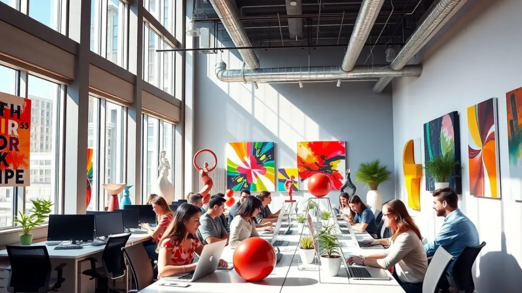 A welcoming and inspiring office improves mood, creativity, and productivity. Warm colors, comfortable furniture, and natural elements create a pleasant atmosphere. Personal touches and social spaces make employees feel valued. A well-thought-out workspace makes work enjoyable and encourages success.